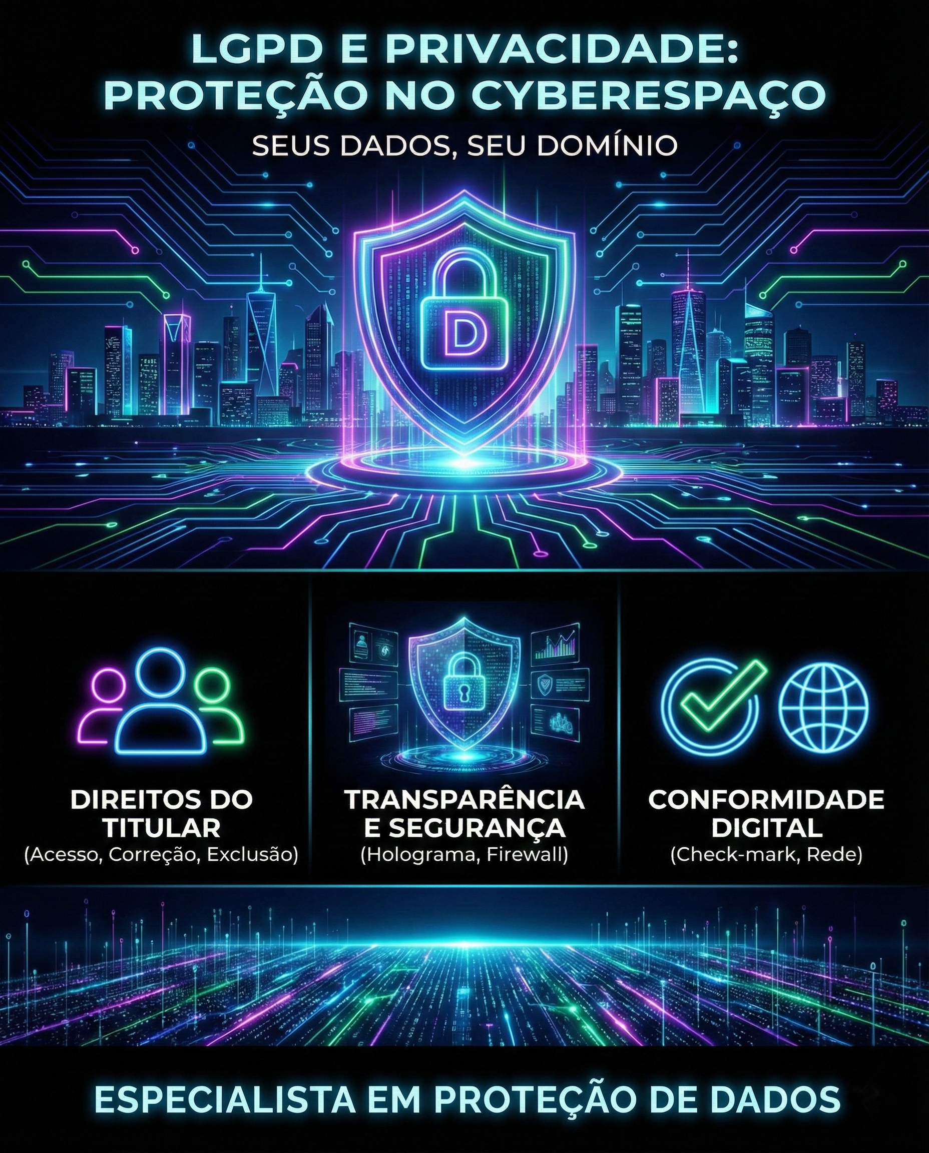 Encarregado de Proteção de Dados terceirizado com expertise jurídica e técnica. Gestão completa das demandas de titulares e órgãos reguladores.* Encarregado * ANPD